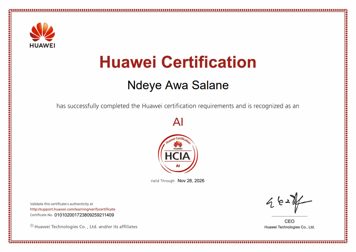 I'm a final-year Master’s student in Computer Science at the University of Geneva, after my engineering degree in Computer Science and Telecommunications at École Polytechnique de Thiès (EPT) , which I joined in 2020 through a national selection process.